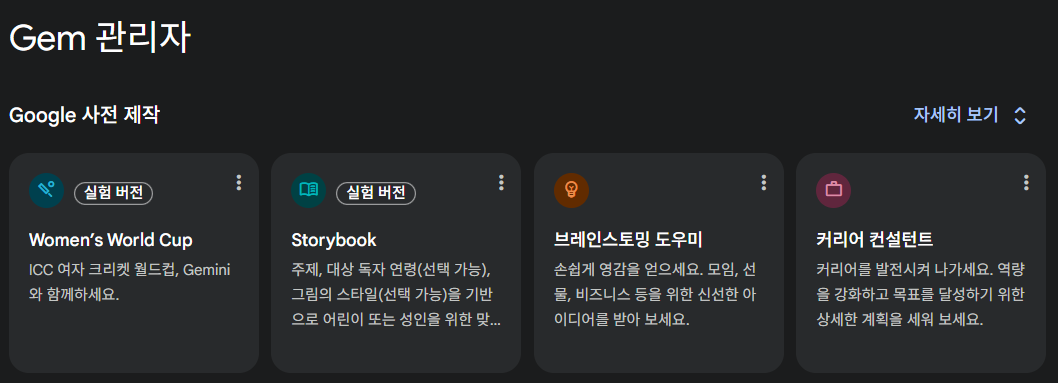 제미나이의  맞춤형 AI 잼스(Gems)  기능