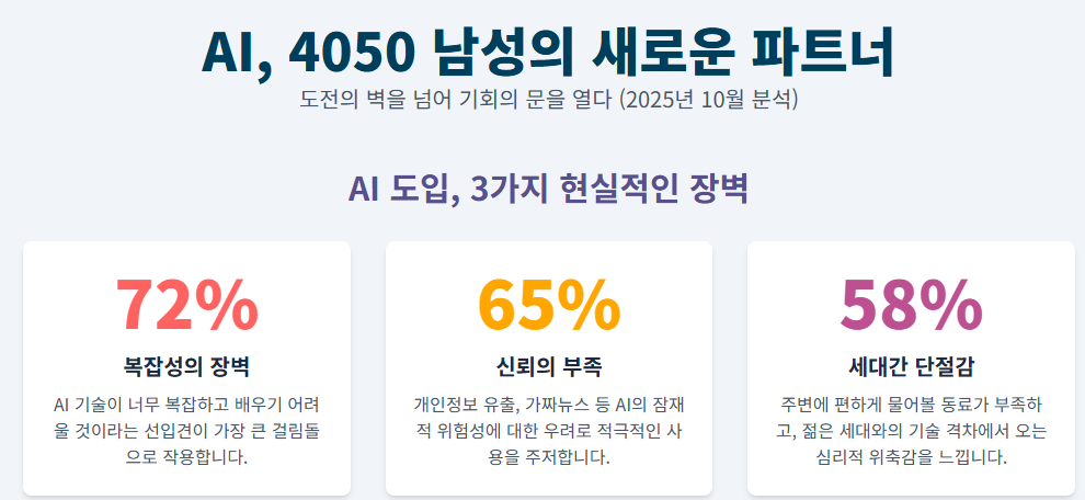 • "40대, 50대 남성이 AI 사용 시 겪는 현실적인 문제점 3가지."