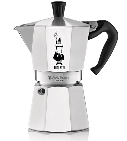 커피 용품 파는 곳에 가면 꼭 있는 비알레띠 모카 익스프레스(Bialetti - Moka Espress)는 이탈리아에서 만든 '국민 커피 메이커'로 유명합니다. 이탈리아 가정에는 필수로 하나씩 가지고 있고 심지어 감옥에도 하나씩 있다는 에스프레소 커피를 추출하는 기구입니다.