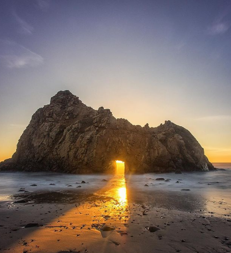 주차 공간이 매우 제한되어 있어 빨리 만차가 됩니다. 1번 고속도로에서 시카모어 캐년(Sycamore Canyon) 도로(바람이 불고 좁아서 RV가 허용되지 않음)를 따라 2마일 정도 운전하면 주차장에 도달하게 됩니다. 파이퍼 비치의 노을은 Keyhole Arch라는 신비로운 바위로 석양이 비치면 이 구멍 안으로 붉은빛이 나오는 다른 해변에서는 볼 수 없는 특별한 장면을 볼 수 있기 때문에 사진작가들도 많이 찾는 곳입니다.