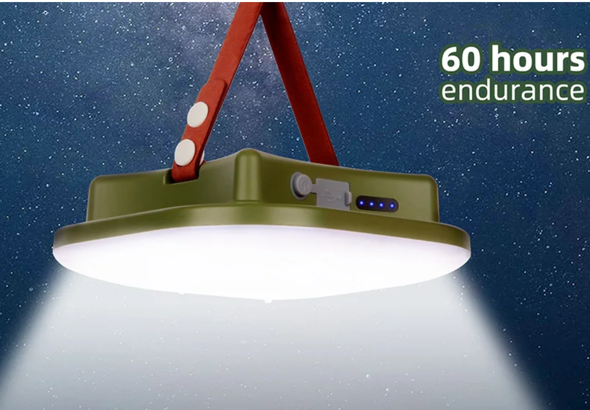 모양이 자일리톨 껌 같기도 하고 보름달 같기도 하여 캠퍼들 사이에서 불리는 대박난 조명입니다. 조명 색상을 따뜻한 노란색, 따뜻한 흰색, 흰색 세가지 중에서 선택할 수 조정할 수 있습니다. 밝기 조절도 가능하고 USB-C 타입 케이블로 충전도 쉽습니다. 생활 방수와 방진이 되기 때문에 비 오는 날이나 모래밭에서도 사용할 수 있습니다.