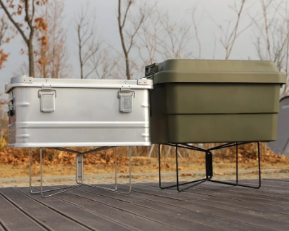 쿨러, 캠핑 박스, 워터 저그 등 다양한 캠핑용품을 거치할 수 있으며 바닥의 오염이나 이슬로부터 보호하며 쿨러의 냉온 효율을 올릴 수 있는 스탠드입니다. 설치 및 수납이 간편합니다.