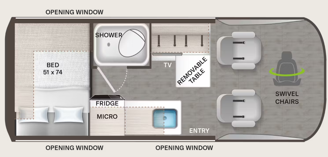The Ontour 2.2 expertly blends Pleasure-Way’s legendary craftsmanship with Ford’s versatile Transit chassis.
