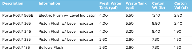 뒤의 두자리 숫자가 클수록 청수통(Fresh Water)과 오수통(Waste Tank)의 용량이 크고 제품 사이즈도 크고 무게도 무겁습니다. 335는 여성분들이나 아이들에게 맞는 사이즈 혹은 아주 날씬한 남성분이 앉기에 적합합니다. 앉았을 때 집에서 사용하는 변기와 비슷한 편안함을 느낄 수 있는 제품은 365입니다. 345와 가로 세로 길이는 동일하고 높이만 다르지만 키가 180cm 이상 되신 분이 사용한다면 345는 불편할 수도 있습니다.